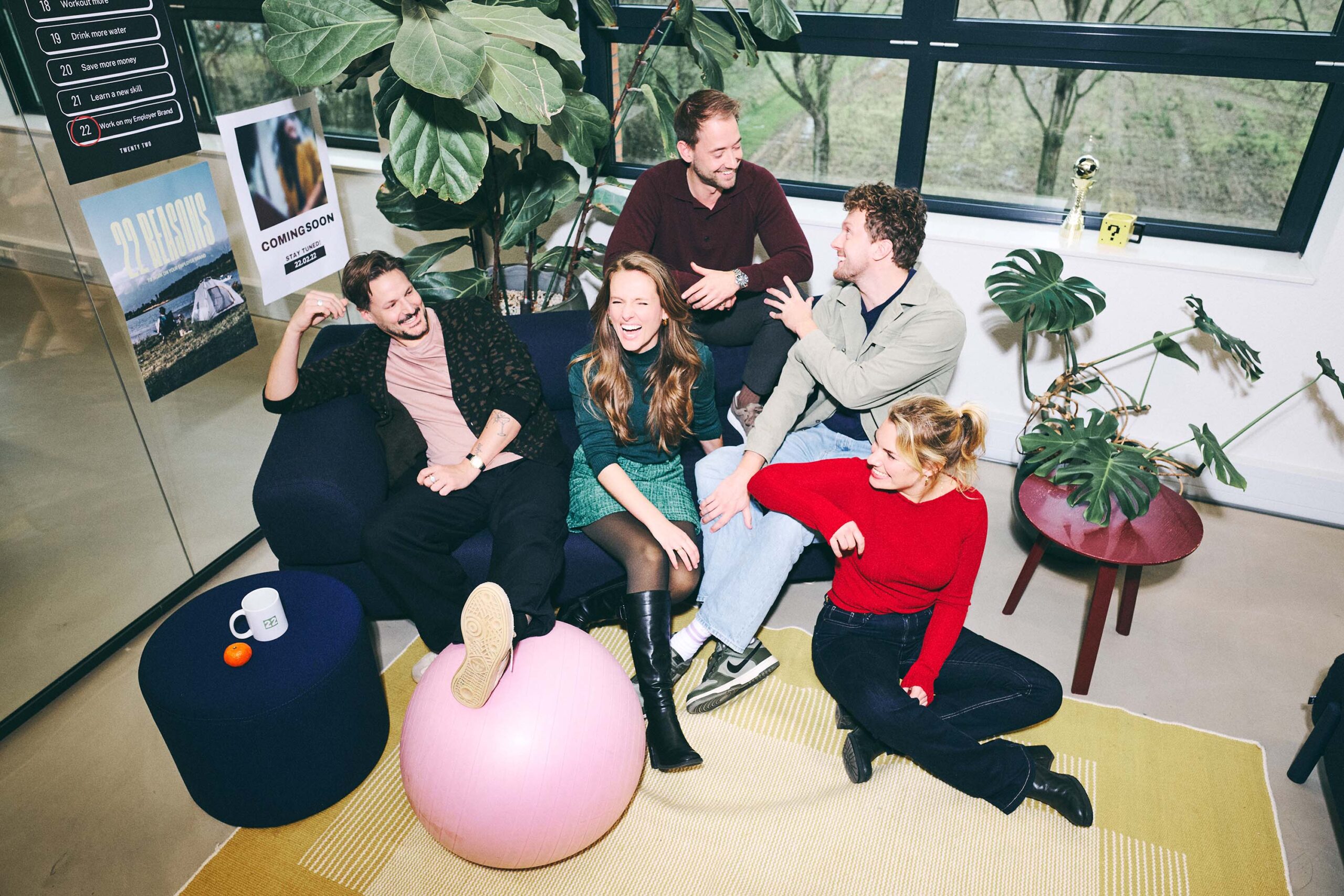 Fresh, ambitious, colourful and with hints to the b2c branding, locations where chosen within the building, as where the talents. By using Odido-brand colours, bright light and glanses outside of the image, an taste of the collective culture is given.